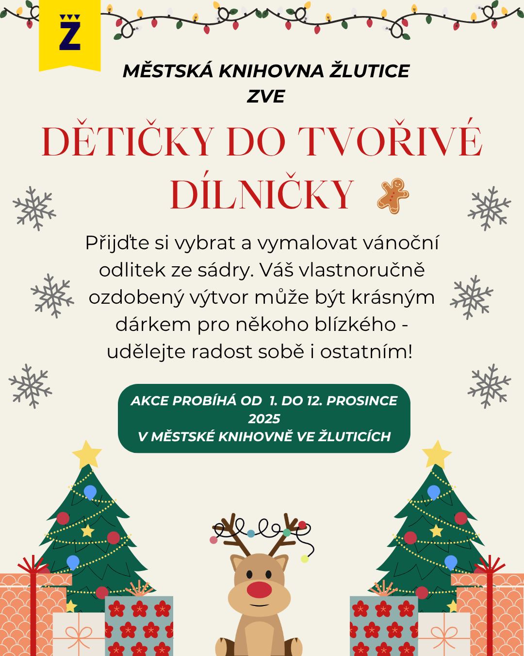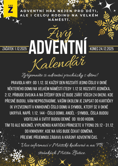 Knihovna Žlutice - Akce Městská knihovna zve dětičky do tvořivé dílničky. Pojďte si zpříjemnit adventní čas kouzelnými večerními procházkami! Na Velkém náměstí se letos poprvé představí Živý adventní kalendář.